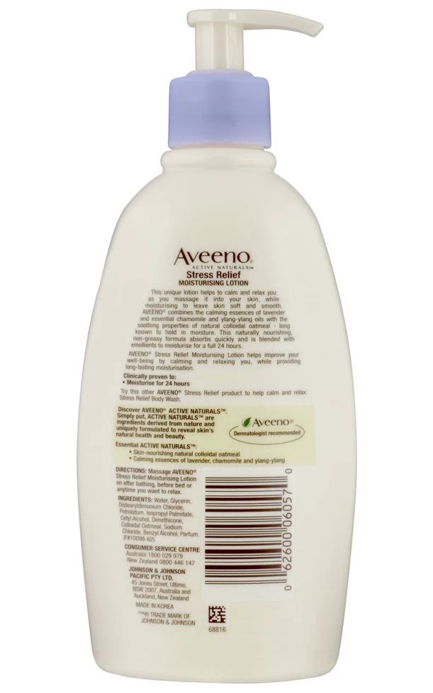 Aveeno Stress Relief Body Wash helps to calm, relax and improve your sense of well-being in the shower while cleansing and moisturising, so your skin feels soft and smooth all day long. This moisturising body wash combines the soothing properties of colloidal oatmeal, long known for its ability to moisturise with the relaxing essences of lavender, essential chamomile and ylang-ylang oils, known for their calming benefits. This creamy formula gently cleanses, moisturises and soothes dry skin, leaving skin softer and smoother all day long. And it’s soap-free and dye-free so it’s even gentle enough for sensitive skin.