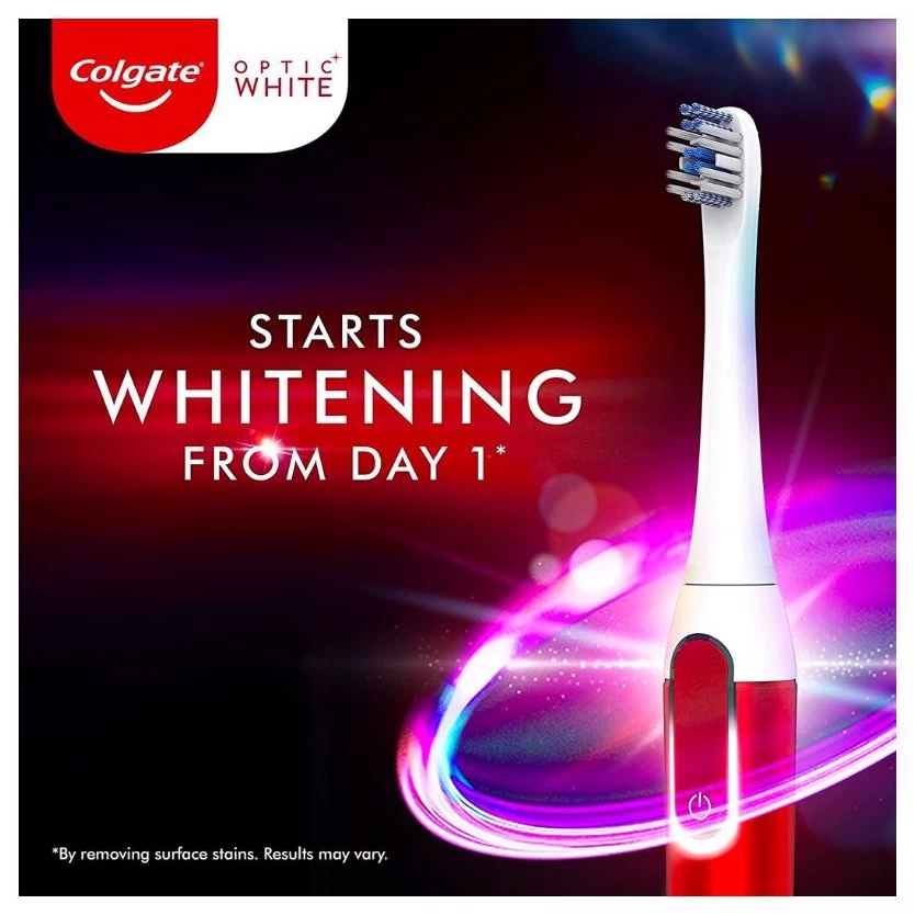 Experience a powerful yet gentle clean with the Colgate Optic White Pro Series Whitening Electric Toothbrush with dual brushing modes. Starts whitening from day 1 (by removing surface stains. Results may vary).