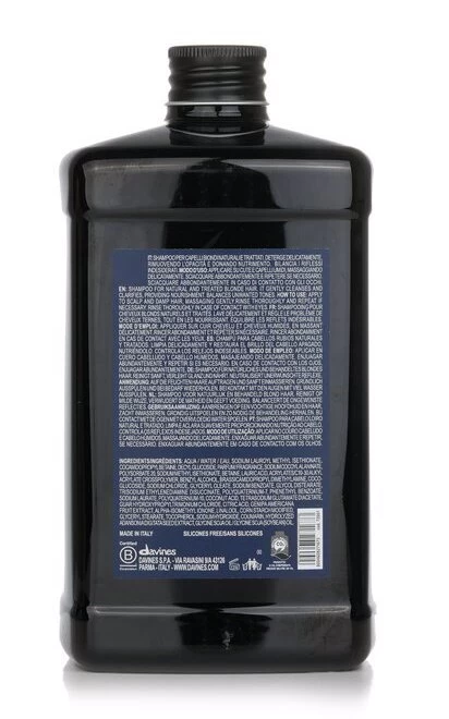 A gentle shampoo for natural or cosmetically treated blonde hair Formulated with 83.3% natural origin ingredients & with a biodegradability of 94.5% Contains natural pigments with no risk of color overcharge Helps cleanse & clarify blonde tones while balancing unwanted reflects Provides nourishment & moisture to hair Immediately illuminates blonde shades Silicone-free Manufactured in 100% CO2 neutral Davines Village Packaging made of post-consumer recycled plastic, 100% offset