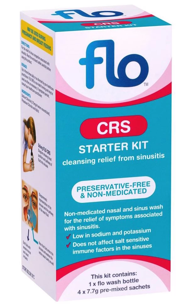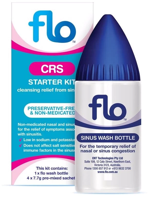 FLO CRS is a large volume nasal and sinus wash that has been specifically formulated for patients suffering from sinusitis.
