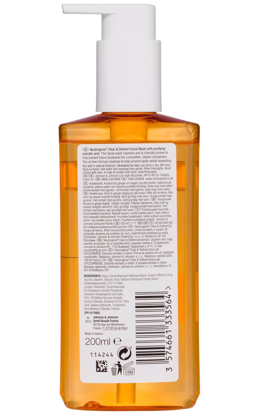 Neutrogena Clear & Defend Facial Wash with purifying salicylic acid.