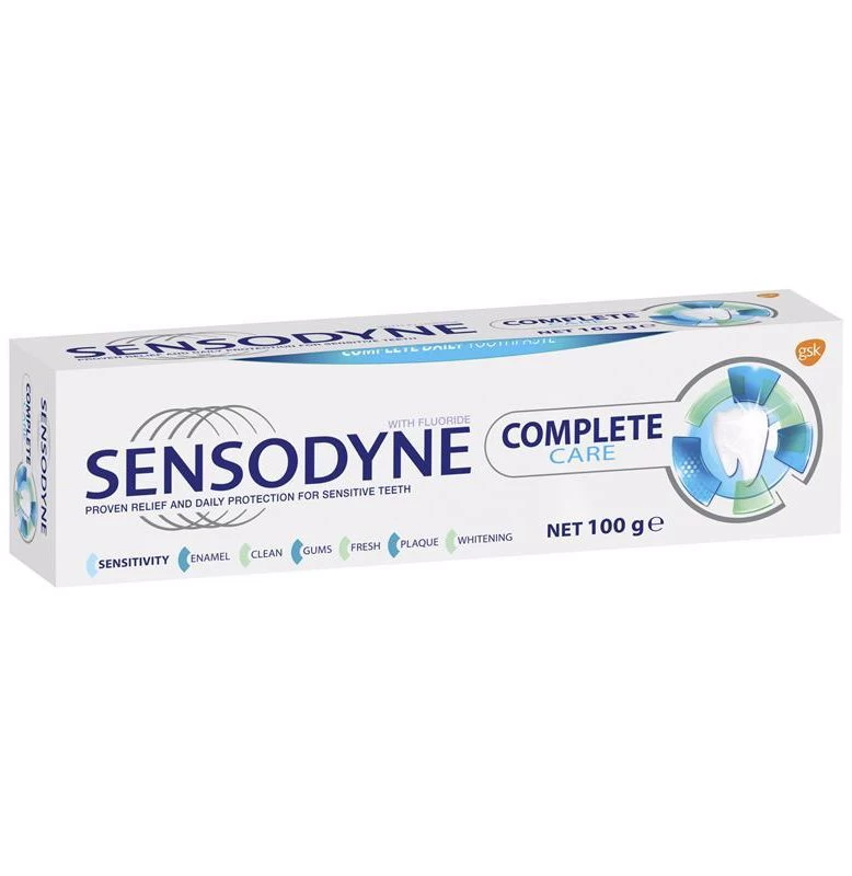 Sensodyne Complete Care toothpaste builds a protective layer over the sensitive areas of your teeth for lasting sensitivity protection – and gives you all the oral care benefits you need in one complete toothpaste. Sensodyne Complete Care toothpaste also strengthens and re-hardens your enamel, protects against plaque, maintains healthy gums and helps you restore your teeth’s natural whiteness. Its extra fresh taste leaves a clean feeling in your mouth.